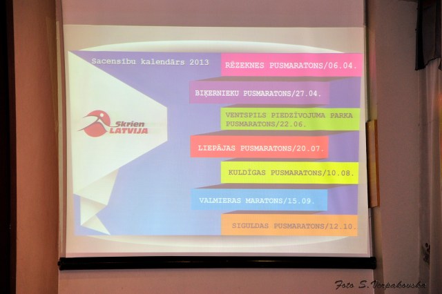 Tātad lielākie panākumi SKRIEN LATVIJA SERIĀLĀ 2012 – Kristapa Bērziņa izcīnītā 6.vieta kopvērtējumā (3.vieta V20 grupā), Andreja Jesko 4.vieta kopvērtējumā (2.vieta V30 grupā) un jau minētā komandas 3.vieta kopvērtējumā, Daiņa Stepes 1.vieta NIKE Tautas skrējienos. Es patiešām lepojos ar ikvienu personīgo, kas izskriets šajā sezonā, ar ikvienu izlieto sviedru lāsi, ar katru soli, ko esam spēruši pretī finiša līnijām, ar tiem burvīgajiem smaidiem, kurus redzu pēc finiša un vispār arī pirms starta. Es lepojos ar Andreja un Kristapa veiksmīgajiem skrējieniem, savu personīgo, Līgas, Arņa, Gata, Daiņa un Ģirta centību, Āra neatlaidību. Es lepojos ar Jāņa Dreiškina pirmo pieveikto pusmaratonu, pārdzīvoju, ka Ivars ieguva traumu šogad. Es biju pārsteigta, bet priecīga, ka Salvis Siguldā uzlaboja savu personīgo rekordu pusmaratonā (Siguldā 1:22,0, pirms tam – 1:23:48), priecājos arī par Daces pozitīvo attieksmi Valmierā, jo skriet maratonu ar smaidu uz lūpām ir jāmāk! Lepojos arī ar Mārtiņa Zariņa 7.vietu NIKE Tautas skrējienos, lepojos, lepojos, lepojos…